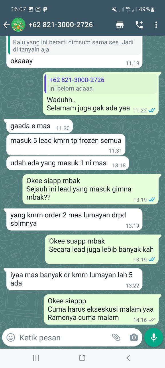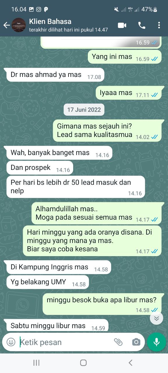 Alhamdulillah mas, bisa konsisten 50 lead yang masuk. Dan itu rata-rata pada langsung telpon